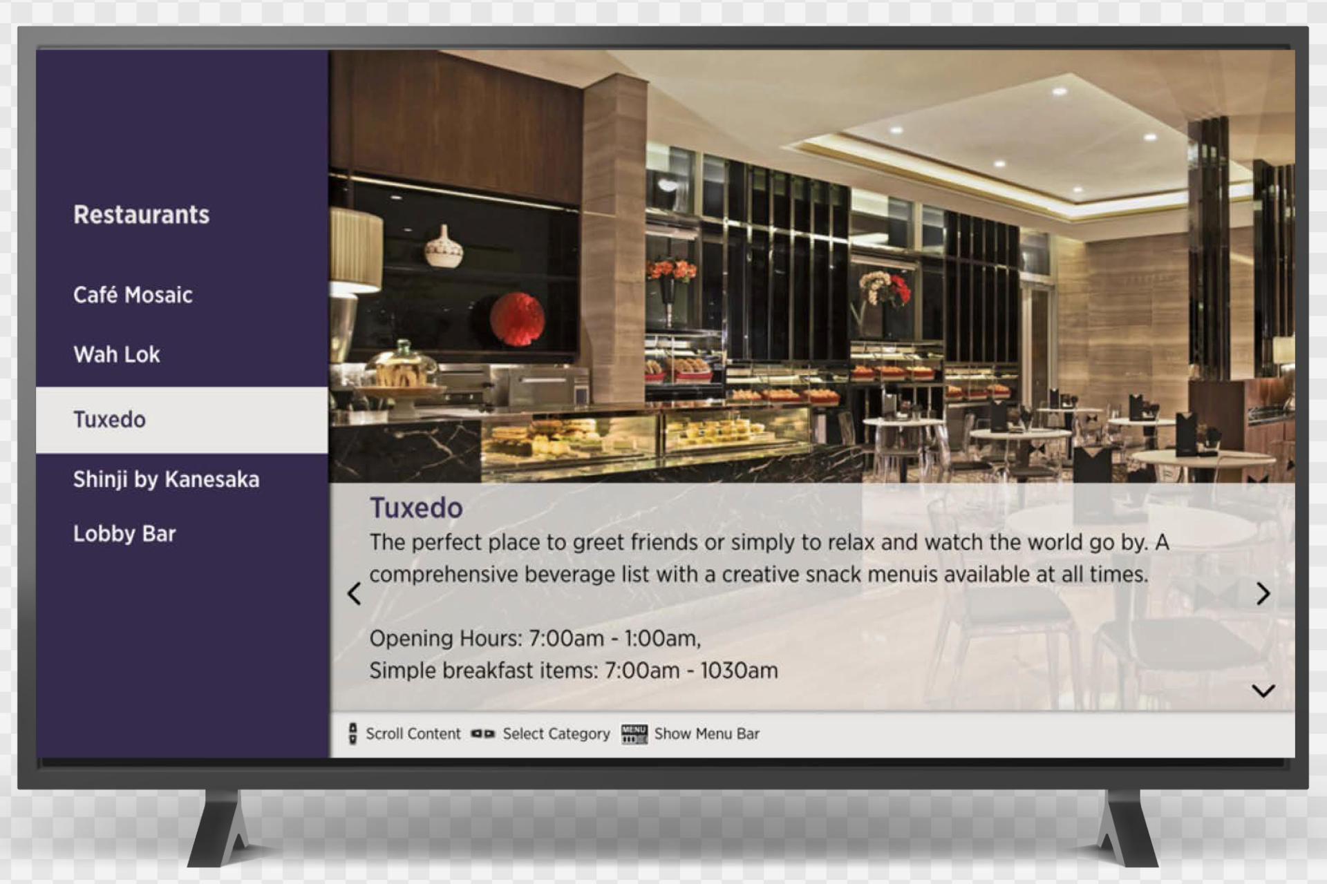 In my 4 years journey of IPTV UI&UX Design, I participated in different layouts for luxury hotel groups in Asia-Pacific Region (APAC). There are horizontal, verticle, and adaptive approaches for different pages.